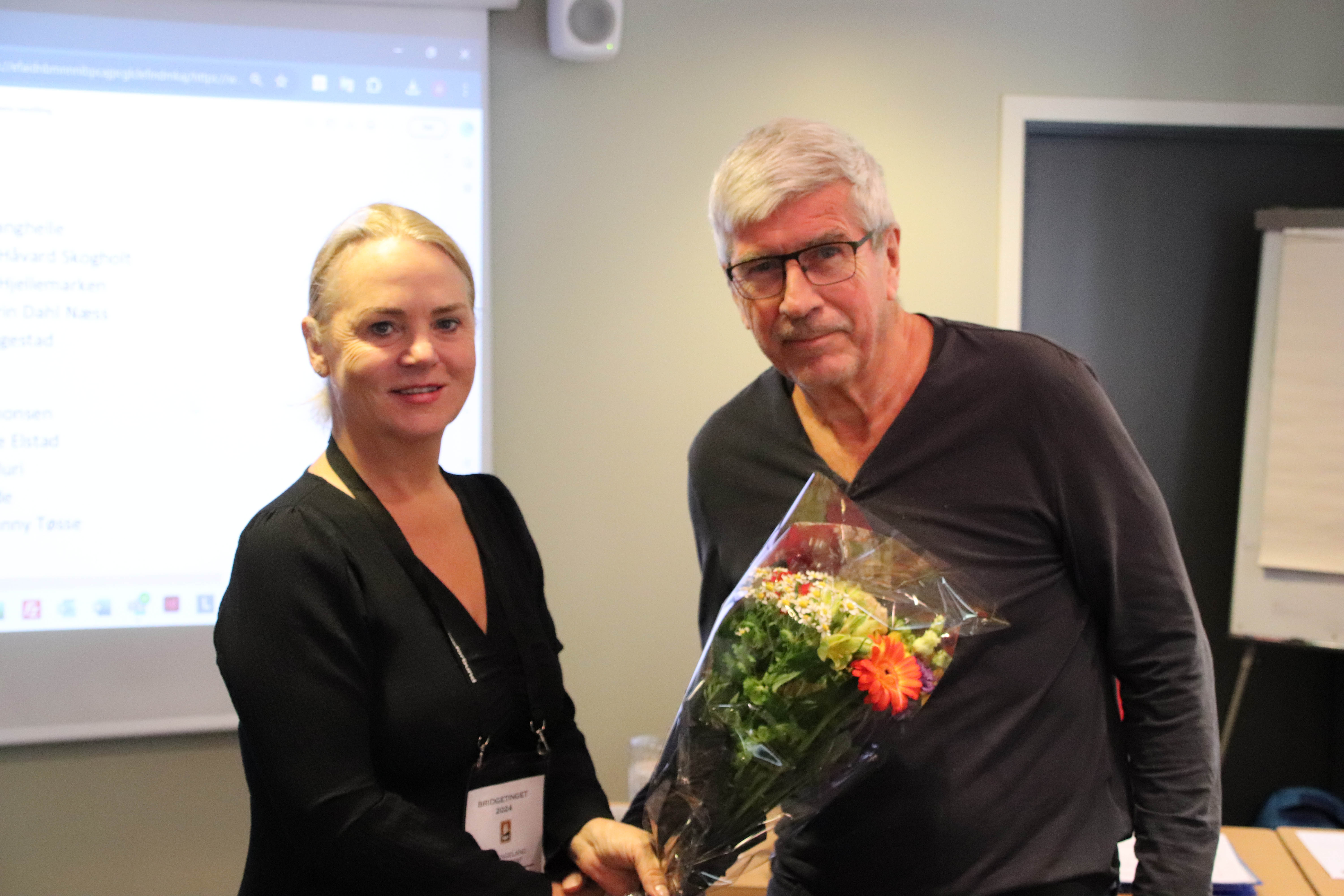 (Jan Muri takket av med blomster)
