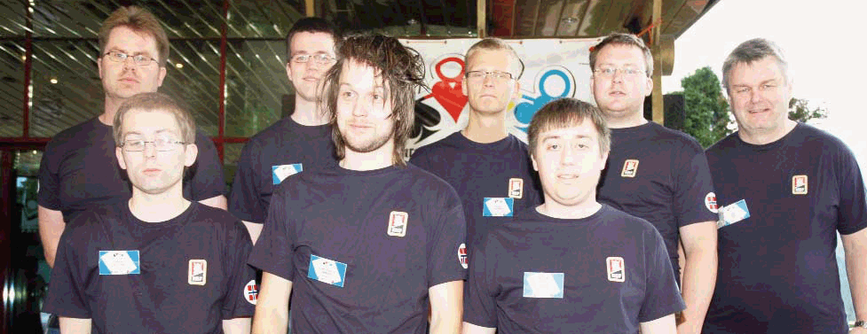 Bak fra venstre: coach Gjermund Rekstad, Lars Arthur Johansen, Espen Lindqvist, Erik Berg og NPC Lars Eide