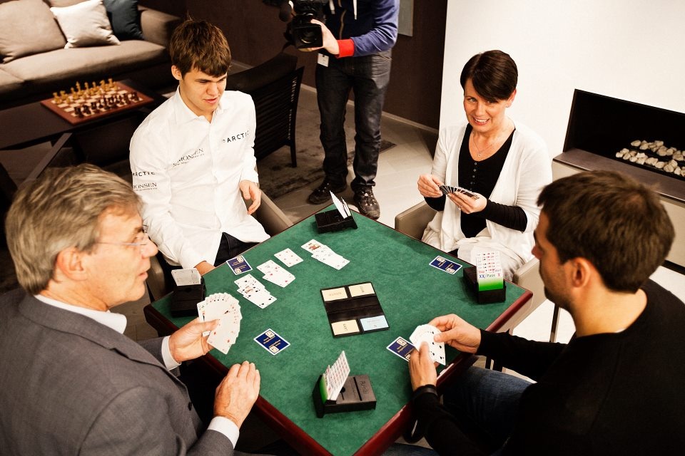 Norsk Bridgeforbund heier på verdens beste sjakkspiler – og på tankesport i Norge! Magnus kan også spille bridge!