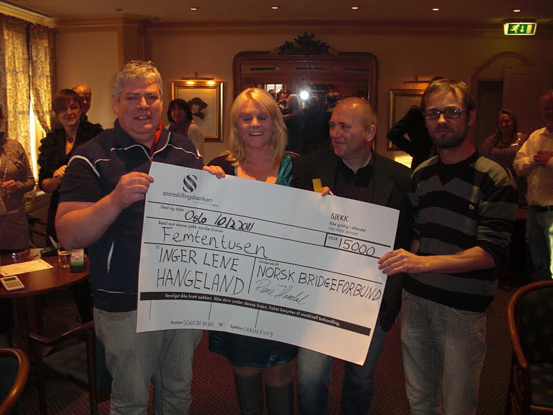 Dette er første tildeling av sitt slag og en storfornøyd og rørt jente mottok sjekken på 15 000 kroner. Inger Lene har i en årrekke vært en vesentlig faktor bak fremgangen til både Ruter 7 og Vest Agder bridgekrets og stipendet er tildelt for hennes ekstraordinære innsats gjennom flere år.
