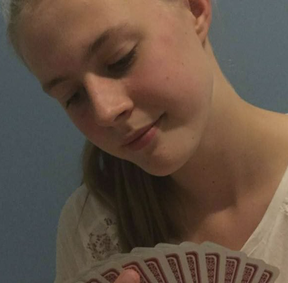 Sofie Græsholt Sjødal (16) Nesodden BK OM SOFIE: Selv om Sofie er yngst på laget, er hun kanskje den mest rutinerte. Sofie har vært med jentelaget i hvert mesterskap siden oppstarten, og ble tidligere i år tidenes yngste sparmester. Sophie begynte å spille bridge fordi begge foreldrene spilte og hun ville skjønne hva de snakket om, og nå kan hun ikke slutte. Med jentelaget har hun bronse i VM U25W, og gull i Nordisk mesterskap U25W. |