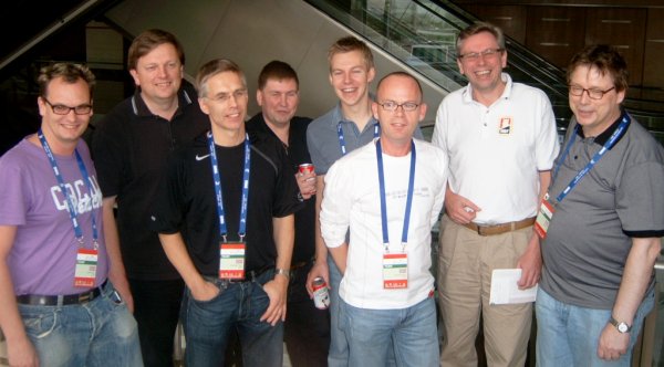 | Gullguttene f.v.: Vegard Brekke (coach), Glenn Grøtheim, Ulf Tundal, Geir Helgemo, Boye Brogeland, Erik Sælensminde, Tor Helness og Sten Bjertnes (kaptein). Foto: Geir Olav Tislevoll |