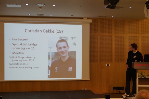 Årets Organisasjonsdager åpnet med toppspillerforedrag av juniorlandslagsspiller Christian Bakke (19). Han holdt et inspirerende innlegg der han fortalte om hva man bør gjøre for å bli en bedre bridgespiller og ga deltakerne bridgeoppgaver å bryne seg på.
