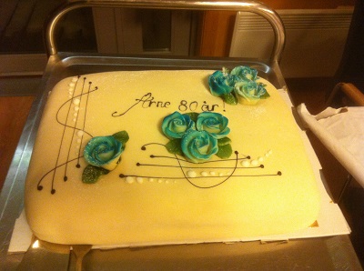 Arne satte stor pris på æresbevisningen og tilstelningen klubben hadde satt i stand med taler, gaver og bløtkake.