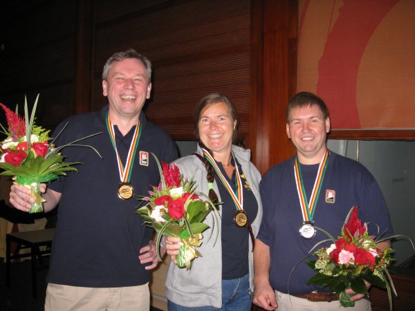 Glade medaljører: Tor Helness, Catarina Midskog og Geir Helgemo |