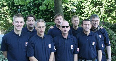 | VM-eventyret over for Boye Brogeland , Espen Lindqvist , Glenn Grøtheim , Ulf Tundal , Per Erik Austberg , Erik Sælensminde , Sten Bjertnes ( NPC ) og Harald Skjæran (Coach ), etter knepent tap i kvartfinalen mot Kina. |