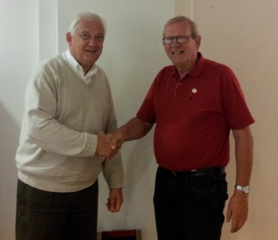 Rune Handal gratulerer Knut Kjærnsrød med tittelen Stormester m/stjerne