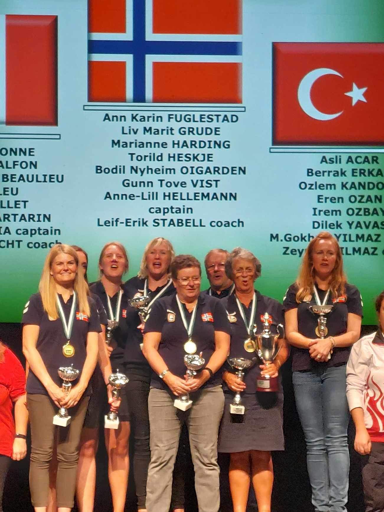 Vi gratulerer Ann Karin Fuglestad, Liv Marit Grude, Marianne Harding, Torild Heskje, Gunn Tove Vist, Bodil Nyheim Øigarden, Anne-Lill Hellemann (kaptein) og Leif-Erik Stabell (coach) med et historisk første gull i dameklassen!