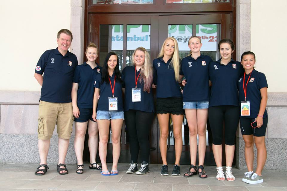 (F.v. Sven-Olai Høyland (kaptein), Rosalind Barendregt (coach), Stine Frøyse, Charlotte Mikkelsen, Thea Hove Hauge, Sofie Sjødal, Marte H. Klingen og Thea Indrebø)
