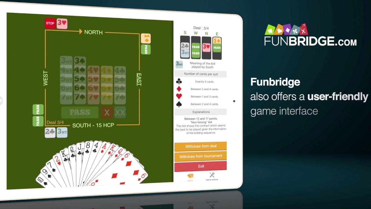 FunBridge er et nettsted der du kan spille bridge. Du spiller med og mot FunBridge sine roboter. Du kan velge system selv, og kan velge blant flere forskjellige system, blant annet SAYC (5-korts major), eller Nordisk Standard (4-korts major, 15-17 NT, svake 2). Du kan også velge nivå, fra nybegynner til ekspert, der robotene inkluderer stadig mer avanserte systemvarianter etter hvilket nivå du velger. Er du i tvil om hva din, makkers eller motstanders melding betyr, kan du klikke på meldingen og få opp en fullstendig forklaring.