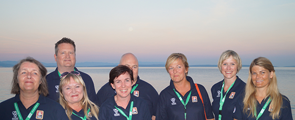 F.v. Siv Thoresen, Øyvind Saur (coach). Sølvi Remen. Ida Wennevold, Tormod Røren (NPC), Gunn Helness, Marianne Harding og Ann Karin Fuglestad.