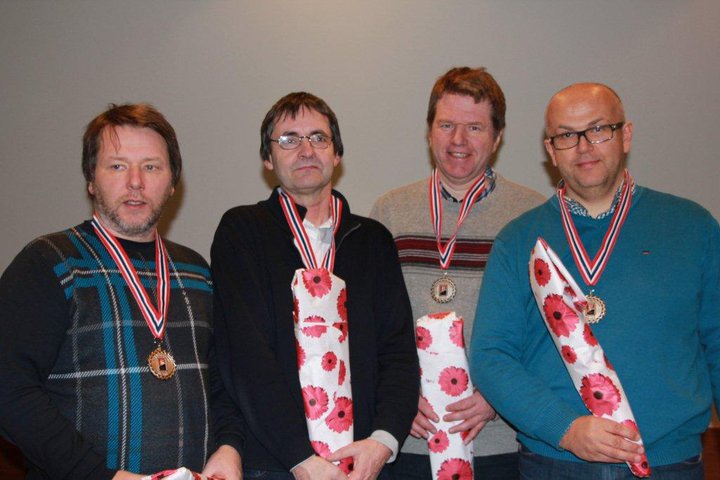 Sølv 1. divisjon: Hordaland 1![]() F.v.: Jim Høyland, Tor Bakke, Sven-Olai Høyland, Magne Eide. Sam Inge Høyland var fraværende. |