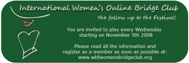 Verdensbridgeforbundet (WBF) og Bridgebase Online (BBO) har gått sammen om å arrangere onlineturneringer for damer hver onsdag. I den forbindelse har de opprettet et eget nettsted - en slags online bridgeklubb. Turneringene starter onsdag 5. november 2008.