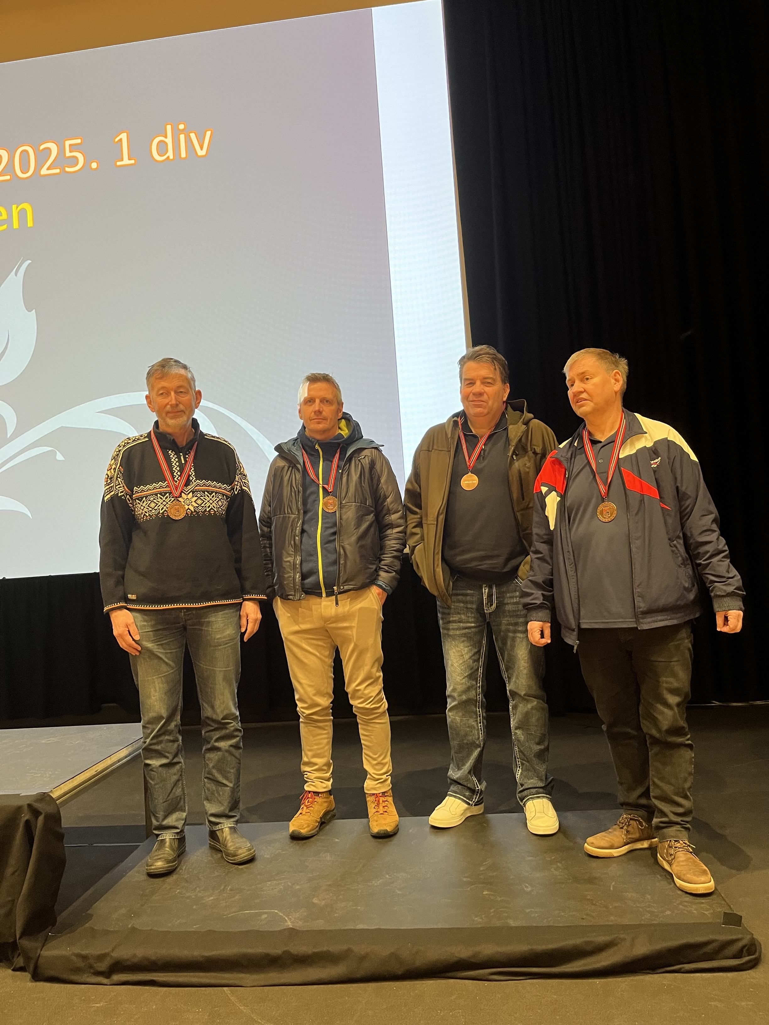 Bronsevinnere 1. divisjon: Terje Aa, Christer Kristoffersen, Per Erik Austberg og Geir Helgemo. Allan Livgård og Arild Rasmussen var ikke tilstede da bildet ble tatt.