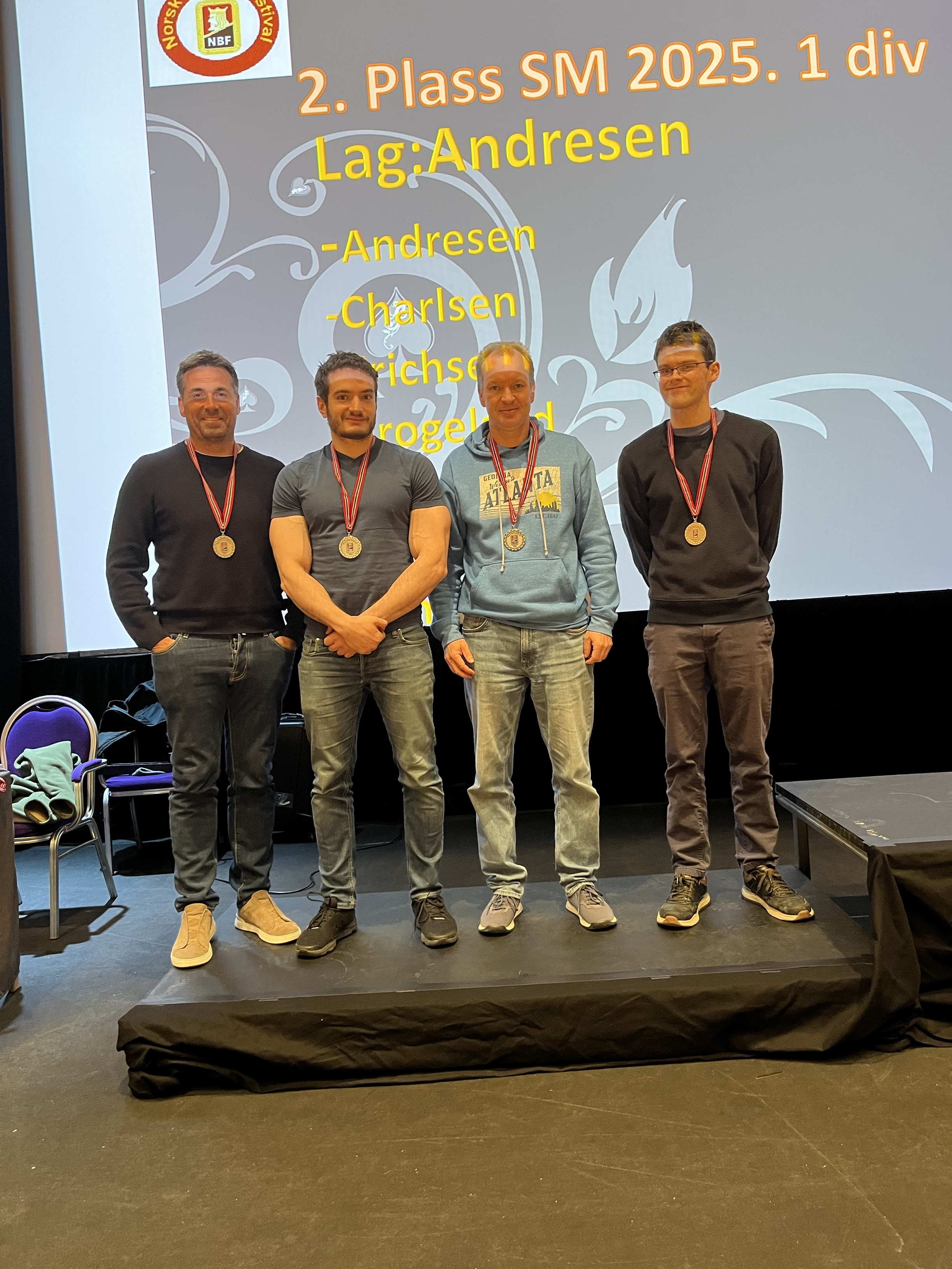 Sølvmedaljører i 1. divisjon: Martin Andresen, Stefano Tommasini, Espen Erichsen og Ben Norton. Boye Brogeland og Thomas Charlsen spilte ikke andre helg.