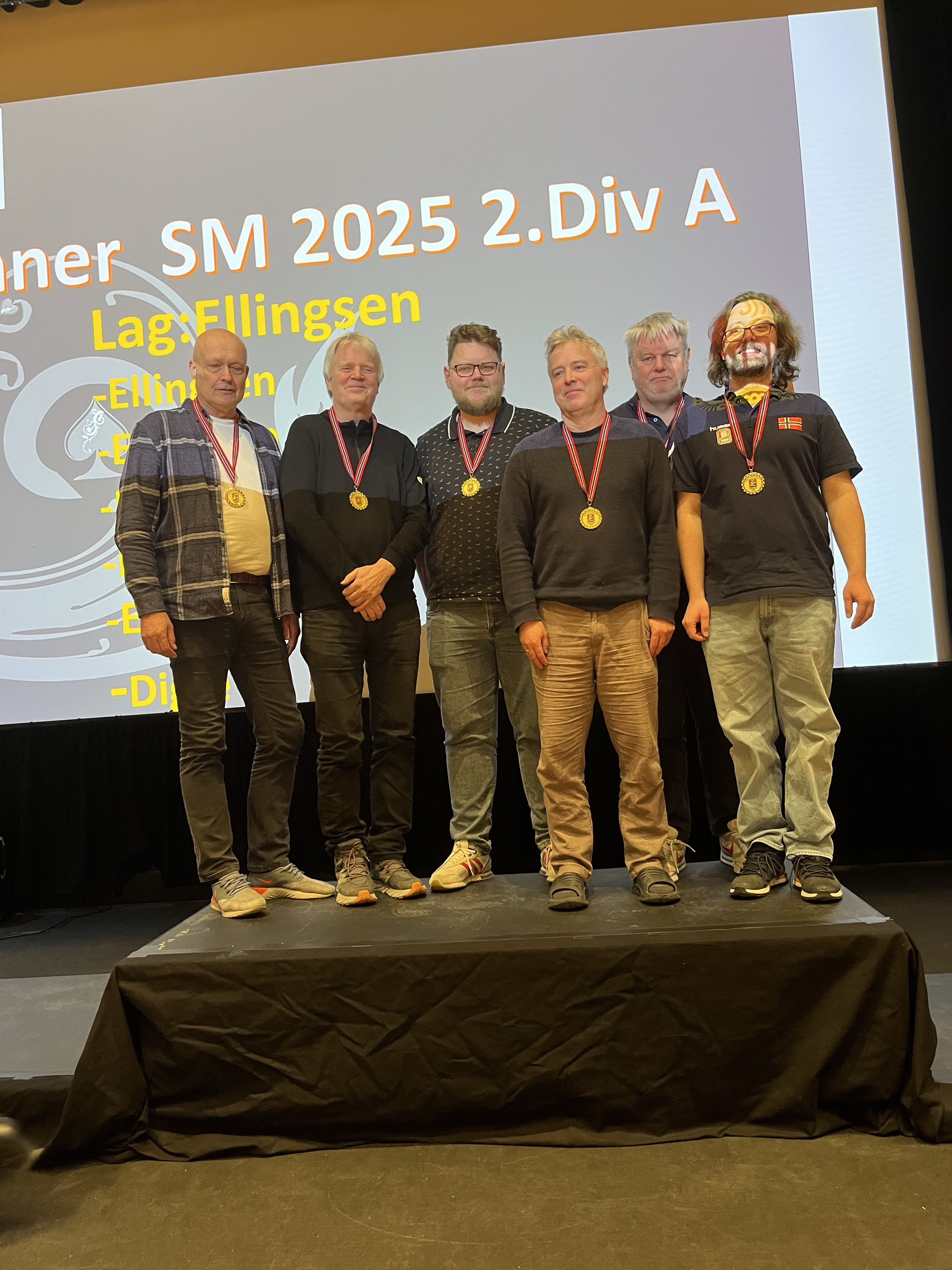 Vinnere 2. div. A: Ståle Digre, Peter Marstrander, Harald Eide, Olav Ellingsen, Lars Eide og Kristian Barstad Ellingsen.