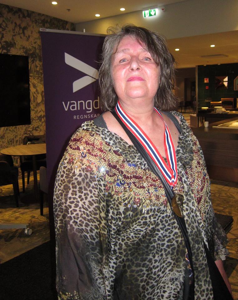 Siv Thoresen mottok nålen som bevis på at hun er Superstormester - Norges første kvinnelige sådan: