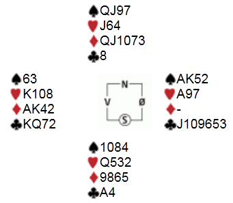 Det har kommet innspill på forrige artikkel, "I slemsonen - 2". Dere får hele given på ny, og du kan tenke at du som vest har havna i 6 hjerter, og får liten ruter ut:
