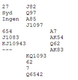 Syd har passet i åpning og har vist EKD i ruter og hjerter knekt. Da har han ikke spar dame fordi da hadde han åpnet. Spar ti kan han ha og derfor er det "bare" å vrenge sparkappen og spille spar knekt!! Dekker nord, kapper du opp tieren.