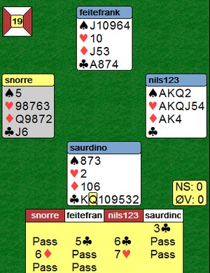 Skal prøve å finne spill noe senere, men kan si det slik; Vi reddet kvelden til Ivar og Eivind på siste bord. Selv om de fikk litt over 40% totalt, så knuste de oss.(vi hjalp godt til) Da ble de så glade at totalscoren spilte ingen rolle lenger