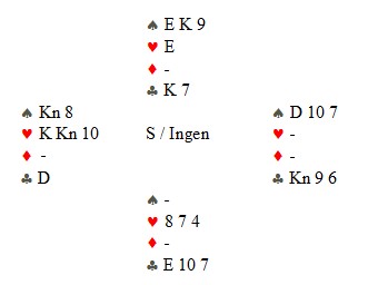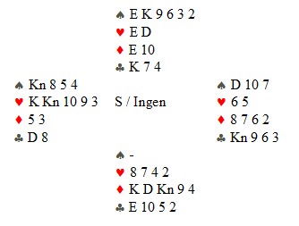 Så en liten kløver fra hver hånd. Vest er inne på åtteren og spiller spar i posisjonen under