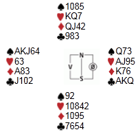 Den eneste måten å skape trøbbel på, er at vest satser på at makker har dobbel hjerter. Da kan han kaste en spar mindre og en hjerter mer siden bordet ikke har nok inntak til å godspille og hente den fjerde hjerteren. Da må kløveren løses med en taper.