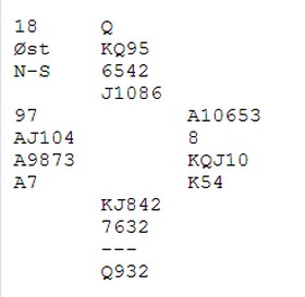 Ved mange bord gikk dette spillet ubemerket an siden i vest ofte spilte ut en spar til EK hos makker. Så tok spillefører for EK i trumf og claima ti stikk.