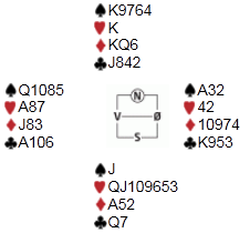 Oddsen for at makkeren din har den sterke varianten er påtrengende, ergo burde det være automatisk å melde 2spar som viser "minst invitt med hjerter"... Når du så får 2NT fra makker så melder du stille og rolig 3ruter som er overføring, deretter løfter du eventuelt til 4hjerter basert på at du har to dobbeltonner og 6 korts trumf, du vet du er på minst 6-2 i hjerter og makker har et sted mellom 20 og 25 honnør, avhengig av hvilke NT intervaller du har.... Loven om totalt antall trumf slår inn, vi vet vi har minst 8 korts, da skal vi spille på 2 trinnet nesten basert kun på det, når man i tillegg vet at makker har den NT styrken han har, da står det fort.....