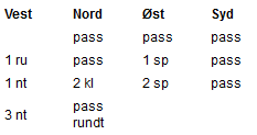 Her skal du få ei lita utspillsprøve, hva spiller du ut etter meldeforløpet under?