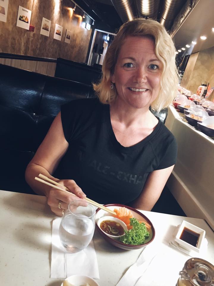 Siv Thoresen er ikke mørkredd og finner en fin stamp. 4hj står lett i elleve stikk, men selv om Tonje og Tone fant ruterstjelinga ga det bare +500. 4 IMP mot 650 på det andre bordet. Der passet Kristine Breivik og øst åpnet med 2sp. Nå ble det vanskelig å stampe.