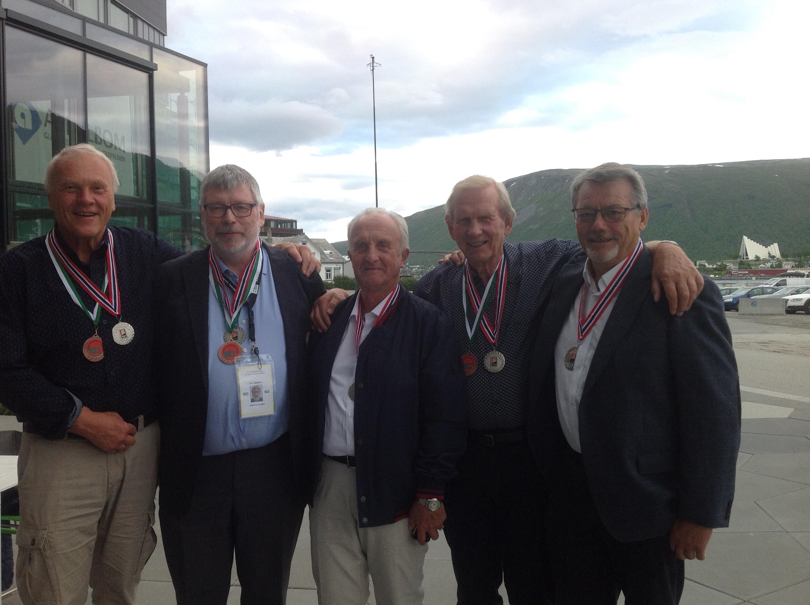 NOTTEROY, dvs. Nøtterøy BK v/Arvid og Tor, Knut og Per, supplert med Sten Bjertnes var i Tromsø under det åpne Europamesterskapet for par, damer, mix og veteraner i begynnelsen av juli, og det ble spilt både lag og parmesterskap. Våre gutter kjempet i veteran lag og veteran par, og laget ble nr. 3 i kvalifiseringen etter et svensk og et norsk lag. Semifinalen begynte bra, men det ble dessverre et tap til slutt. Med dette resulterte i at laget ble nr. 3 og fikk bronsemedaljer i EM og samtidig sølvmedalje i NM.