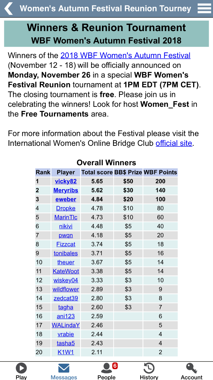 På siste kveld i årets Høst-turnering deltok 17 par. Vinnere ble Jens H. Gundersen - Jan Steinar Mydland med 679,9. Jan Erik Hesstvedt - Maria Svae fikk 628,0 og Kurt Ellingsen - Arne Tveiten 619,0. Sammenlagt ble Jan Steinar Mydland vinner med 3790. Arne Tveiten fikk 3730 og Rolf Lassen Lersbryggen 3375. Vi gratulerer.