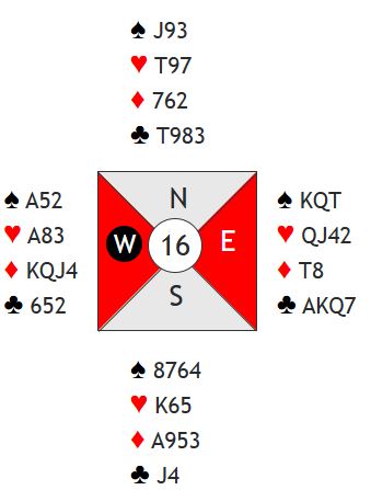 Her er et spill fra semifinalen i parturneringen. (giver øst, øst/vest i sonen)